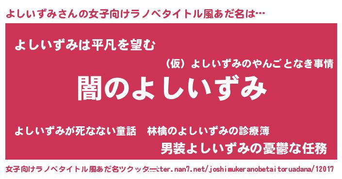 | 胡散臭い通販商品みたいなあだ名 | 『テレビで話題のアガリクス…その名も「よしいずみ」』 |