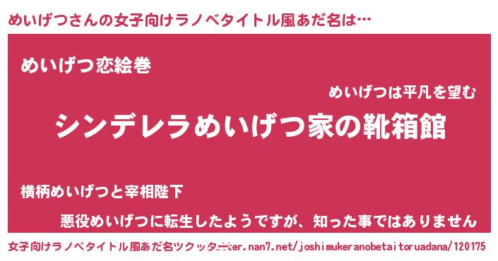 | 男性向けラノベタイトル風あだ名 | 『緋弾のメイゲツ』 |