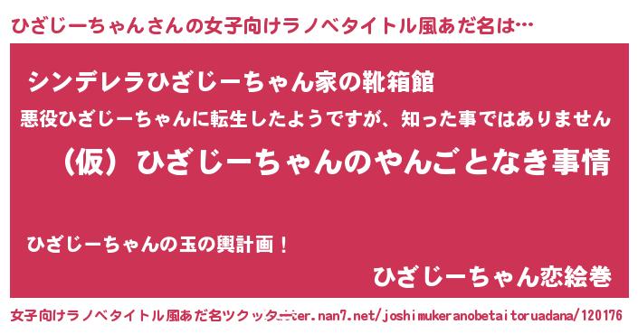 | 胡散臭い通販商品みたいなあだ名 | 『必ず成功するブレスレット…その名も「ひざじーちゃん」』 |