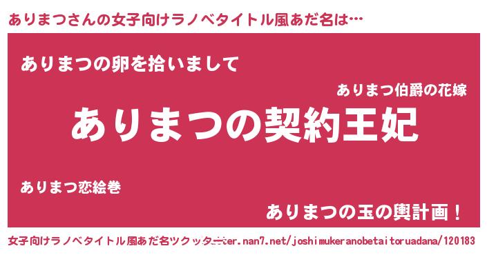 | 胡散臭い通販商品みたいなあだ名 | 『来世でも幸せになれる健康食品…その名も「ありまつ」』 |