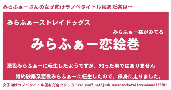 | ヒーロー風カッコイイあだ名 | 『愛の使者みらふぁー』『黄金騎士ミラ』 |