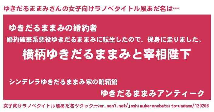 | ファンタジー風あだ名 | 『エターナルユキダルママミー』 |