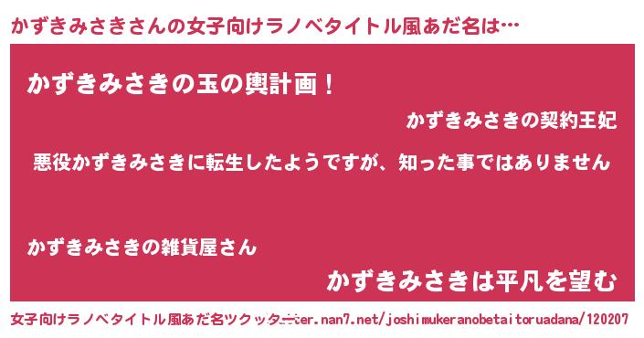| 男性向けラノベタイトル風あだ名 | 『この素晴らしい世界にかずきみさきを!』 |
