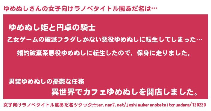 | 男性向けラノベタイトル風あだ名 | 『転生したらゆめぬしだった件』 |