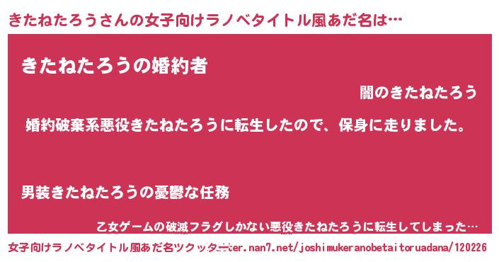 | 男性向けラノベタイトル風あだ名 | 『キタネタロウスレイヤー』 |