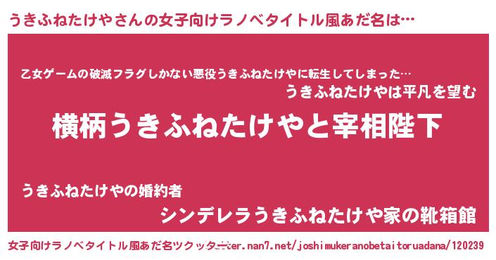 | 男性向けラノベタイトル風あだ名 | 『うきふねたけやに滅ぼされるだけの簡単なお仕事です』 |