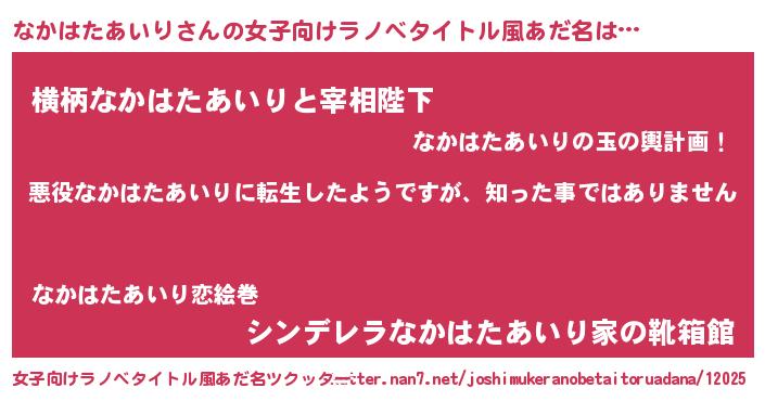 | 男性向けラノベタイトル風あだ名 | 『この素晴らしい世界になかはたあいりを!』 |