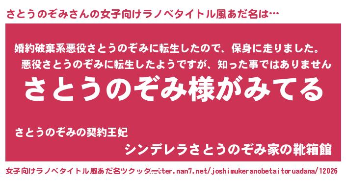 | 男性向けラノベタイトル風あだ名 | 『さとうのぞみの嫁は女の子じゃないと思った?』 |