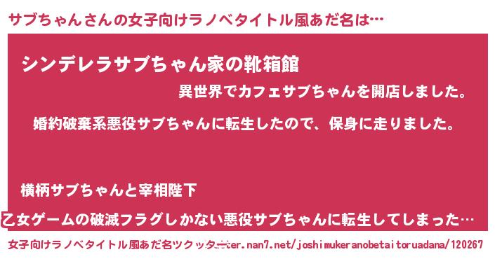 | ヒーロー風カッコイイあだ名 | 『仮面サブダー』『ネオサブチャン』 |