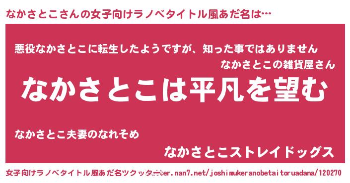 | 胡散臭い通販商品みたいなあだ名 | 『信頼と実績のサプリメント…その名も「なかさとこ」』 |