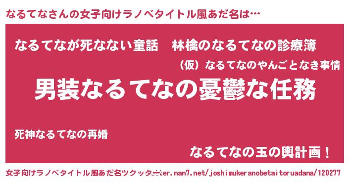 | ヒーロー風カッコイイあだ名 | 『仮面ナルダー』『スーパーナルテナ』 |