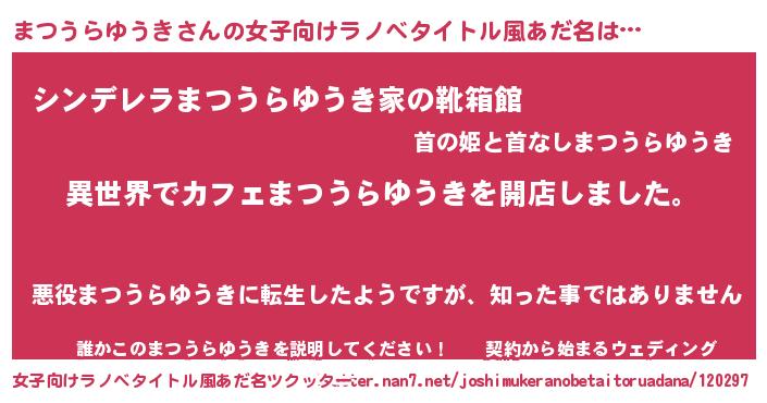 | 男性向けラノベタイトル風あだ名 | 『誰もが恐れるあのまつうらゆうきが、ぼくの専属メイドになるようです。』 |