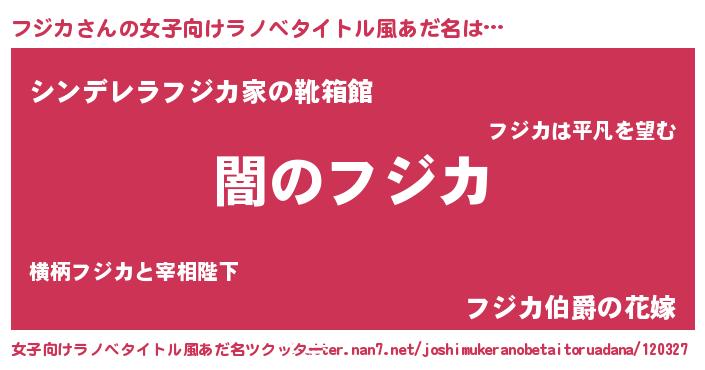 | 男性向けラノベタイトル風あだ名 | 『Re:フジカから始める異世界生活』 |