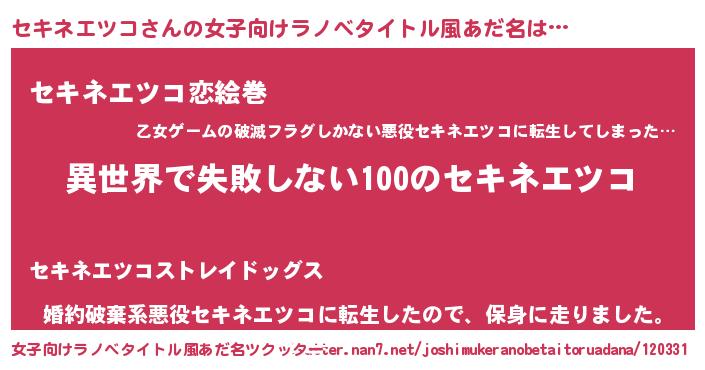 | 男性向けラノベタイトル風あだ名 | 『セキネエツコという概念が存在しない退屈な世界 』 |