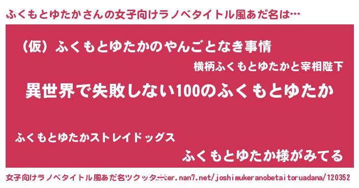 | 男性向けラノベタイトル風あだ名 | 『ふくもとゆたかという概念が存在しない退屈な世界 』 |