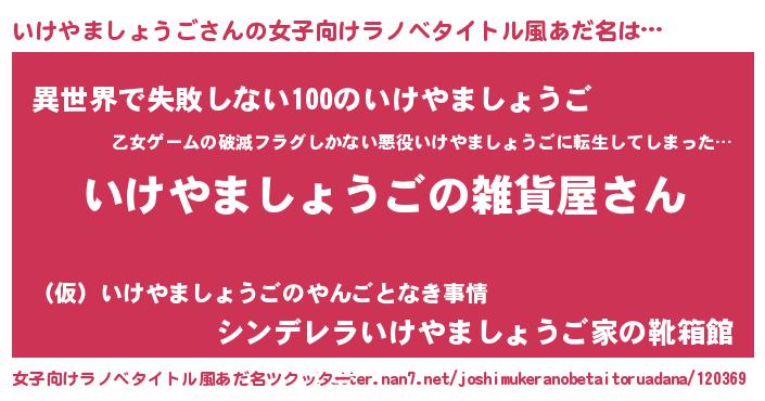 | 男性向けラノベタイトル風あだ名 | 『やはりいけやましょうごの青春ラブコメはまちがっている 』 |