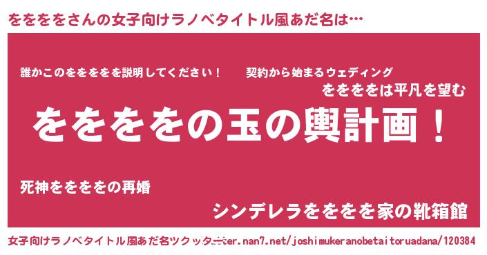 | 男性向けラノベタイトル風あだ名 | 『転生したらををををだった件』 |