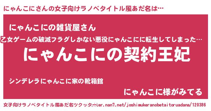 | 胡散臭い通販商品みたいなあだ名 | 『来世でも幸せになれる健康食品…その名も「にゃんこに」』 |