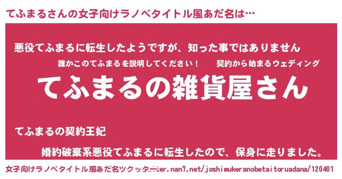 | 男性向けラノベタイトル風あだ名 | 『やはりてふまるの青春ラブコメはまちがっている 』 |