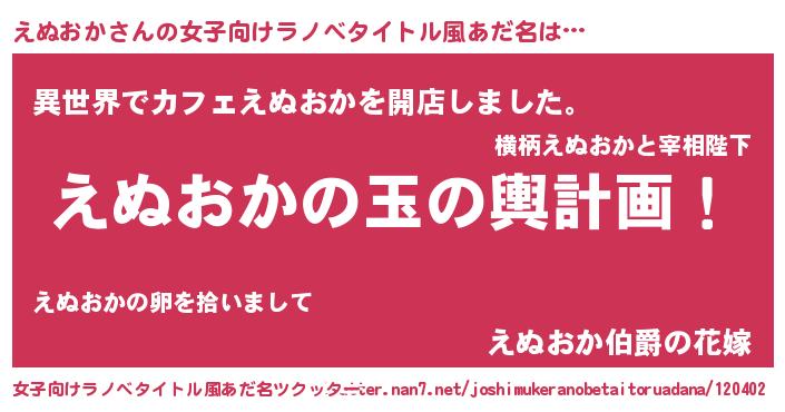 | 胡散臭い通販商品みたいなあだ名 | 『来世でも幸せになれる健康食品…その名も「えぬおか」』 |
