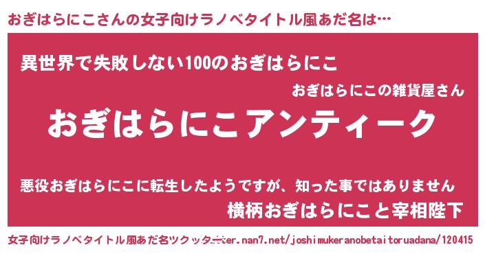 | 意味不明あだ名 | 『自称おぎはらにこ』 |