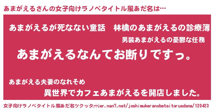 | 意味不明あだ名 | 『自称あまがえる』『永久保存あまがえる』 |