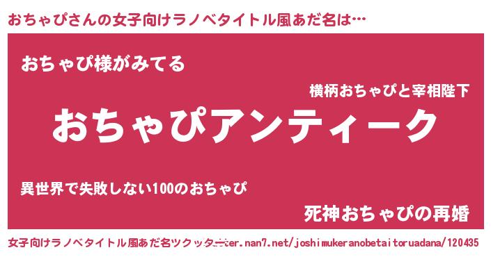 | 男性向けラノベタイトル風あだ名 | 『魔法科高校のおちゃぴ』 |