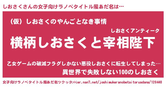 | 胡散臭い通販商品みたいなあだ名 | 『億万長者になれるブレスレット…その名も「しおさく」』 |
