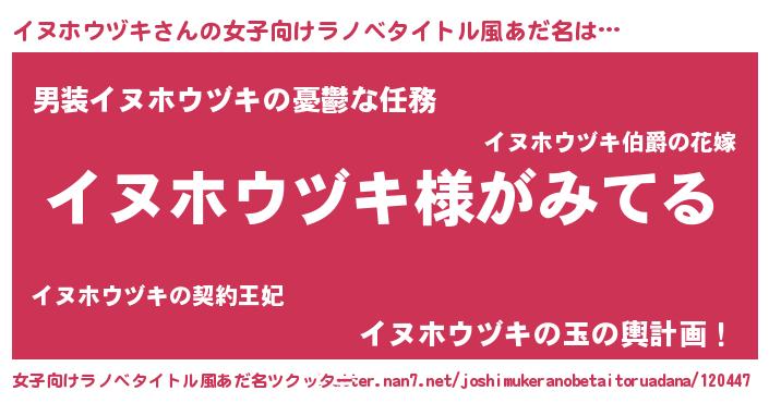 | 男性向けラノベタイトル風あだ名 | 『イヌホウヅキの嫁は女の子じゃないと思った?』 |