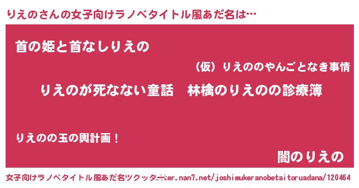 | 胡散臭い通販商品みたいなあだ名 | 『ハリウッド女優が絶賛した100年もののヴィンテージワイン…その名も「りえの」』 |