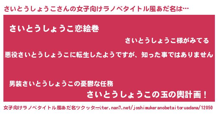 | 意味不明あだ名 | 『住所不定無職さいとうしょうこ(56歳)』 |