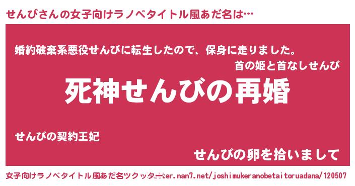 | 男性向けラノベタイトル風あだ名 | 『ノーゲーム・ノーセンビ』 |