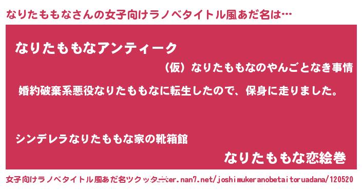 | 男性向けラノベタイトル風あだ名 | 『転生したらなりたももなだった件』 |