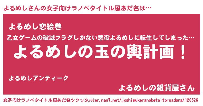 | 意味不明あだ名 | 『なめこ科よるめし属』『自称よるめし』 |