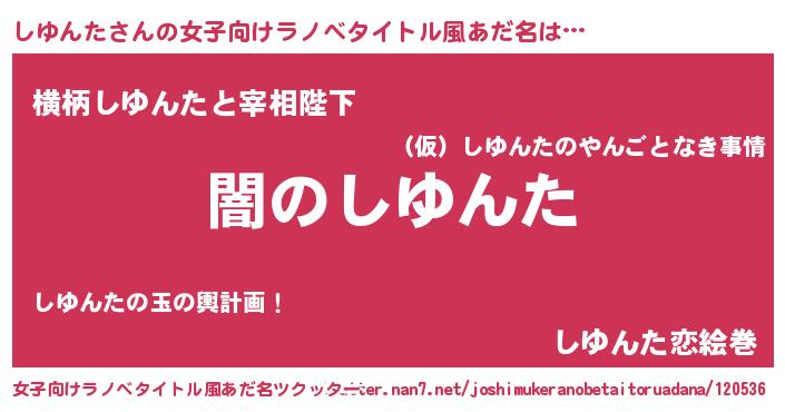 | ヘコむあだ名 | 『しゆにゅー』『しゆんた(笑)』 |