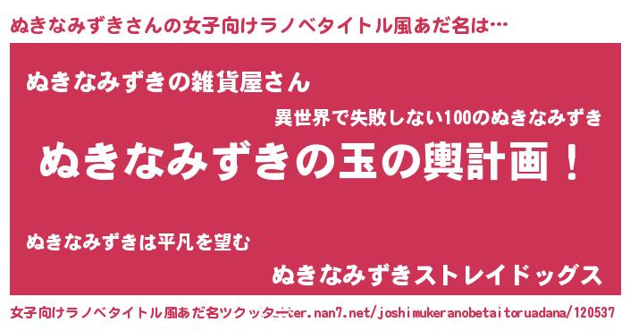 | ヒーロー風カッコイイあだ名 | 『ウルトラぬきなみずきマン』 |