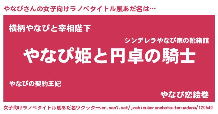 | 男性向けラノベタイトル風あだ名 | 『ヤナピアートオンライン』 |