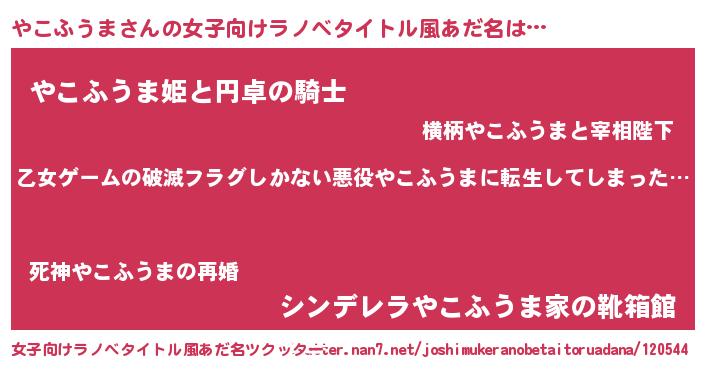 | 意味不明あだ名 | 『住所不定無職やこふうま(11歳)』 |