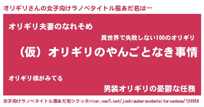 | 男性向けラノベタイトル風あだ名 | 『オリギリの憂鬱』 |