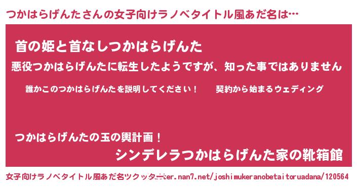 | 男性向けラノベタイトル風あだ名 | 『ツカハラゲンタアートオンライン』 |