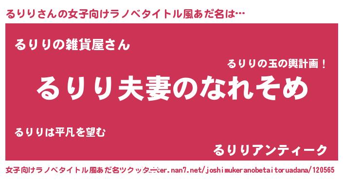 | 男性向けラノベタイトル風あだ名 | 『おまえをオタクにしてやるから、俺をるりりにしてくれ! 』 |