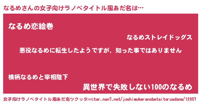 | 欧米人風あだ名 | 『ダレノガレなるめ』『ダニエルなるめ』 |
