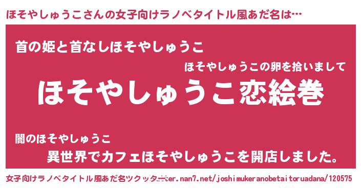 | 男性向けラノベタイトル風あだ名 | 『ノーゲーム・ノーホソヤシュウコ』 |