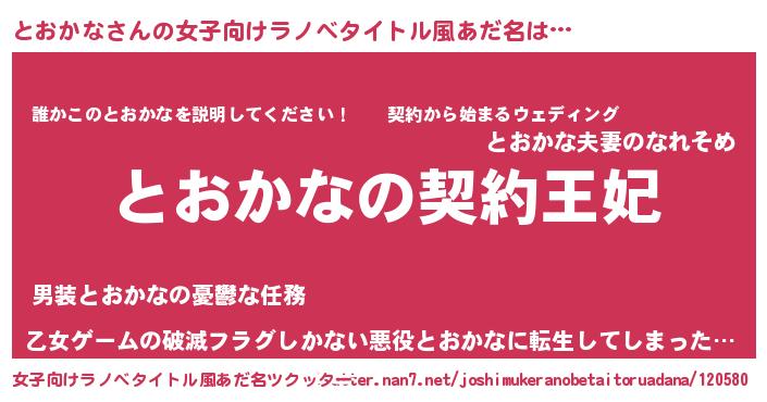 | 意味不明あだ名 | 『永久保存とおかな』『ペロリンとおかな』 |