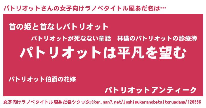 | 胡散臭い通販商品みたいなあだ名 | 『信頼と実績のネックレス…その名も「パトリオット」』 |