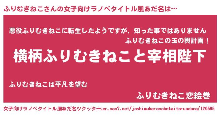 | 男性向けラノベタイトル風あだ名 | 『ふりむきねこに滅ぼされるだけの簡単なお仕事です』 |