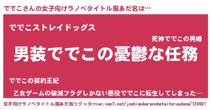 | 意味不明あだ名 | 『自称ででこ』『住所不定無職ででこ(11歳)』 |