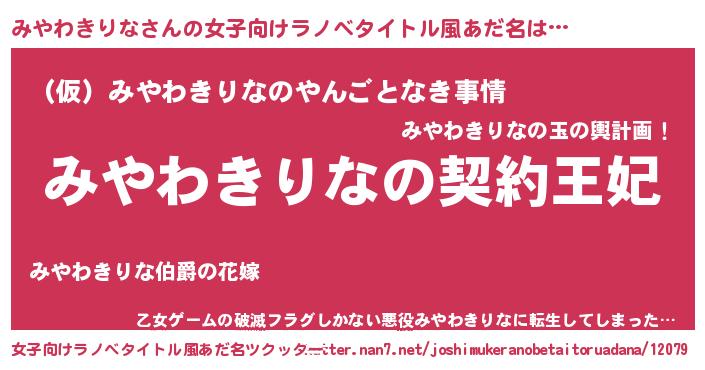 | 男性向けラノベタイトル風あだ名 | 『みやわきりなという概念が存在しない退屈な世界 』 |