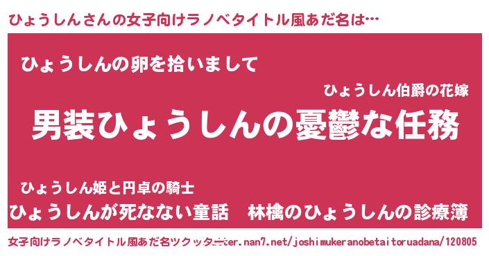 | 胡散臭い通販商品みたいなあだ名 | 『伝統あるサプリメント…その名も「ひょうしん」』 |