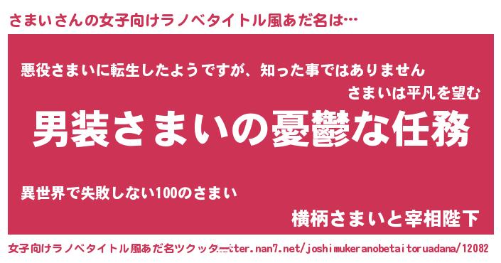 | 男性向けラノベタイトル風あだ名 | 『うちのさまいが世界を掌握している!』 |